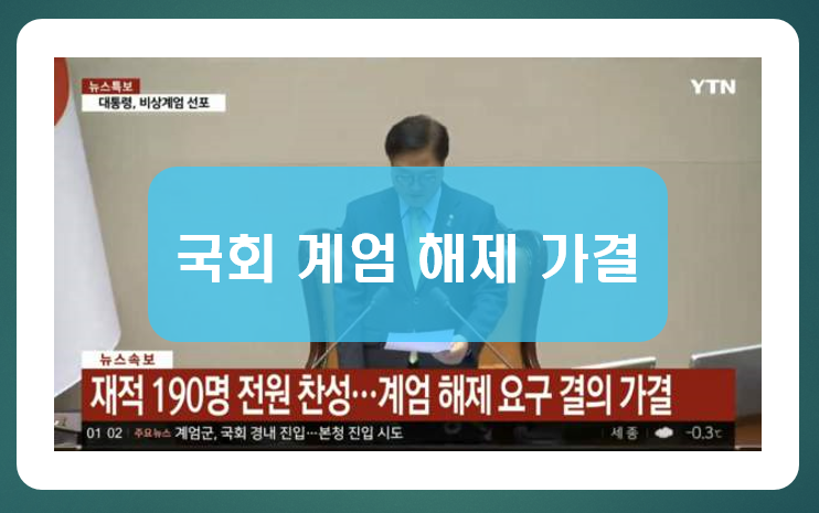 결국 국회의원 192명이 모여서 비상계엄해제 요구안 투표를 진행하였고, 192명 전원 찬성으로 가결되었습니다.