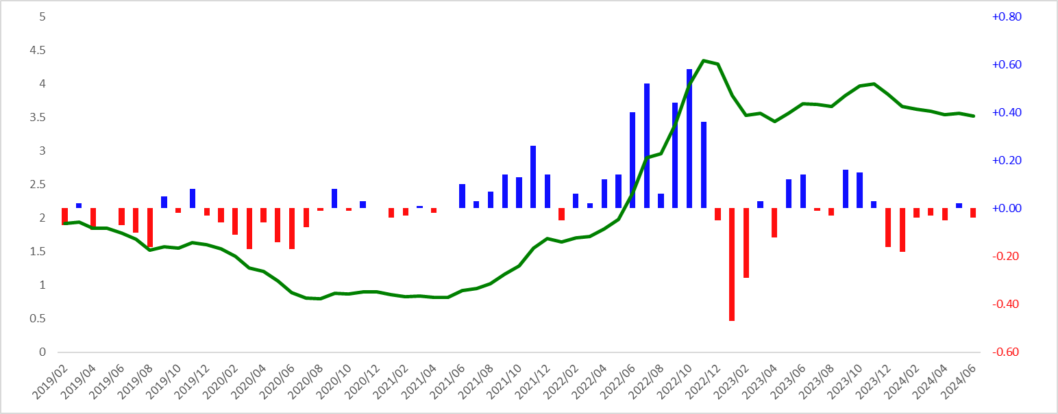 기준금리 : 3.52% (6월 3.56% - 5월 3.54%)