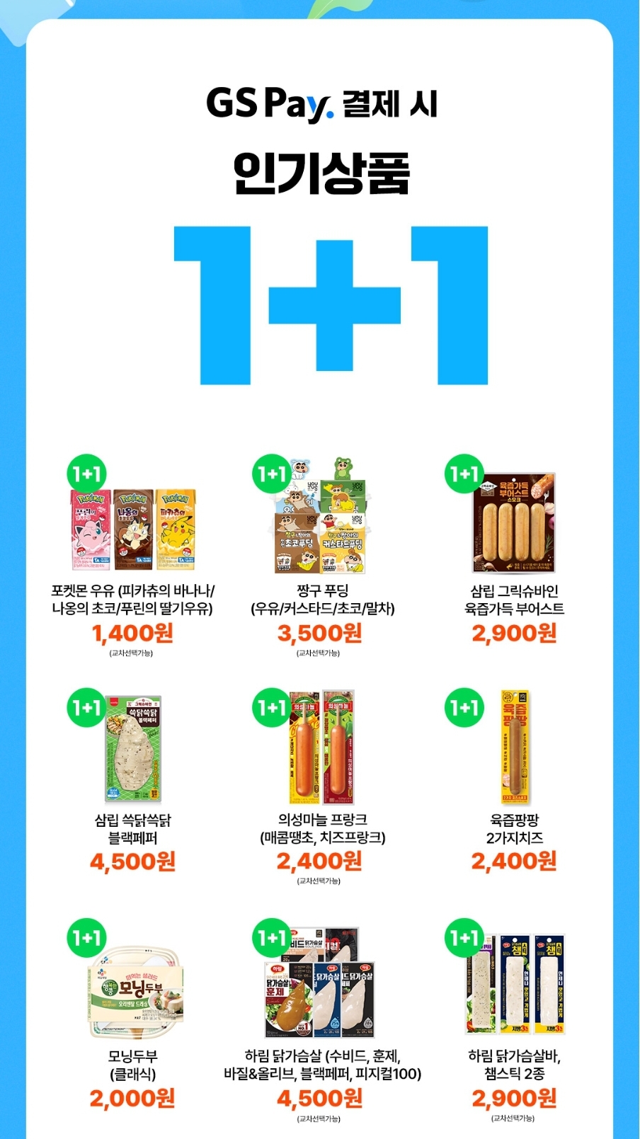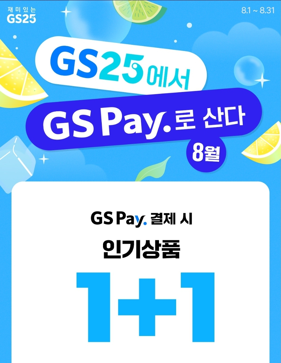 GS25 8월 행사 GS Pay 인기상품 1+1 상품