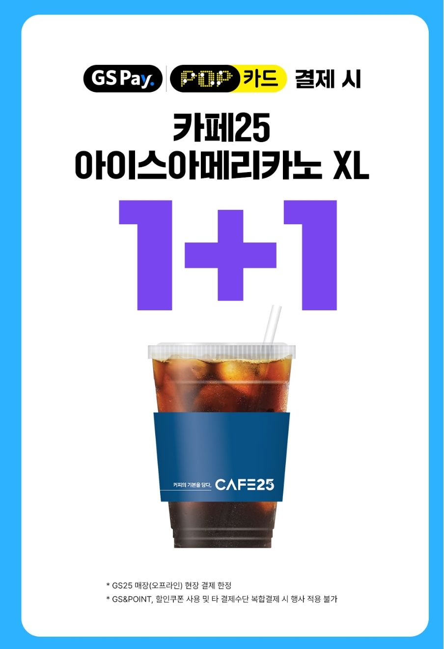 GS Pay / POP 카드 결제 시 카페25 아이스아메리카노 XL 1+1