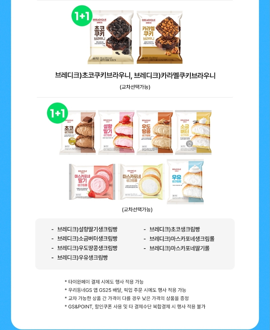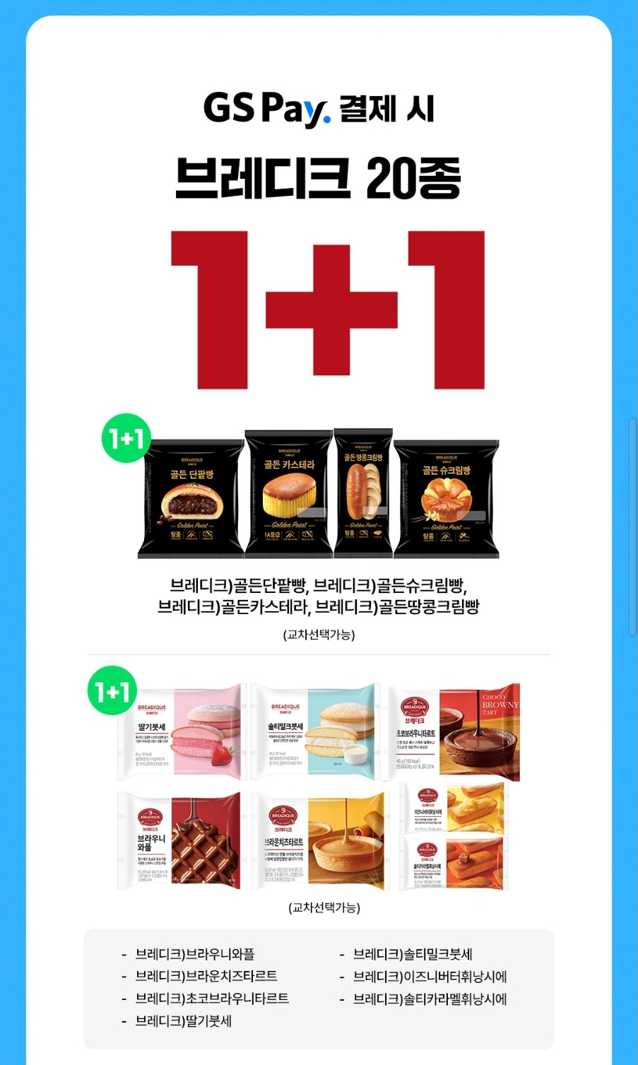 GS25 8월 행사 GS Pay 브레디크 20종 1+1 상품