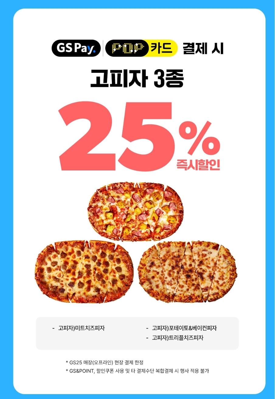 GS Pay / POP 카드 결제 시 고피자 3종 25% 즉시할인 행사