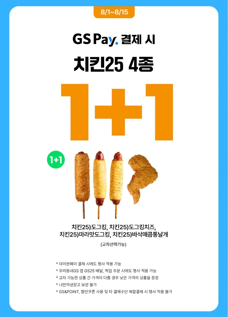 GS25 8월 행사 GS Pay 치킨25 4종 1+1 행사 상품