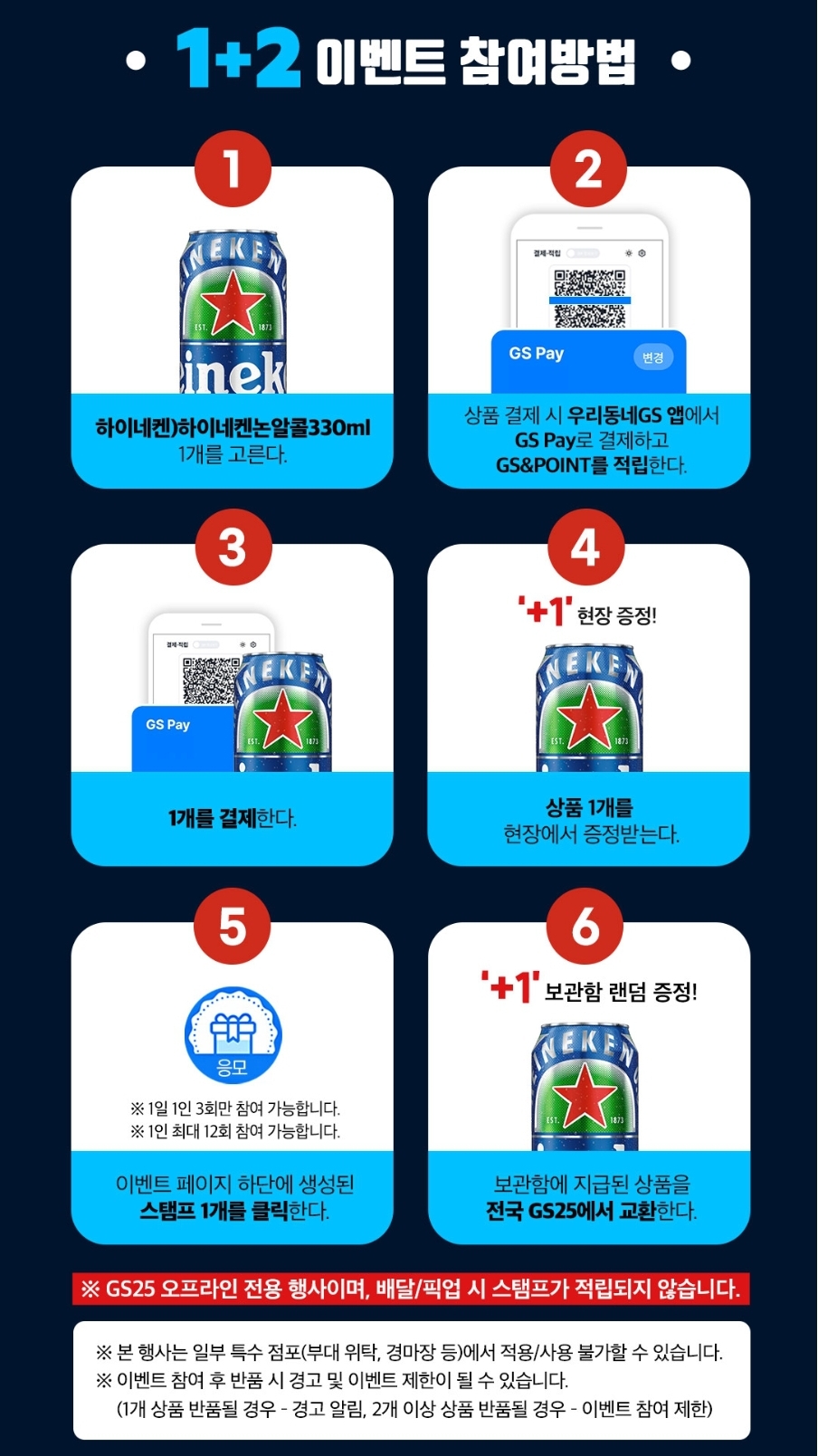 GS Pay 로 하이네켄 논알콜 330ml 구매 시 1+2 행사입니다.