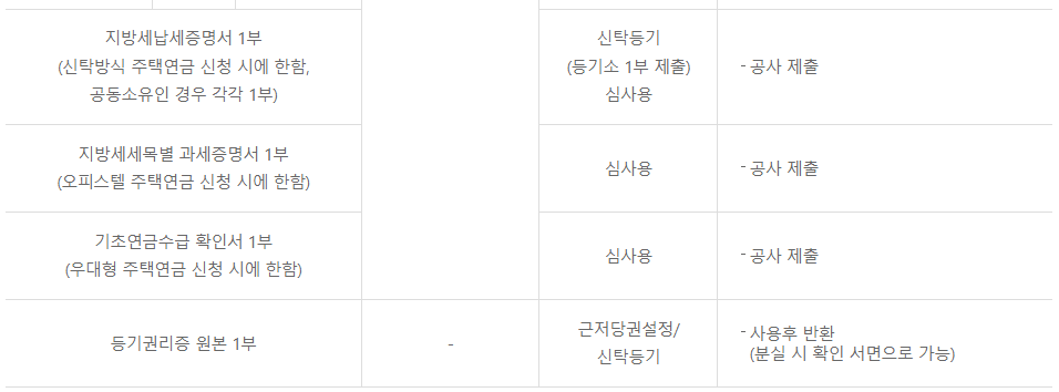 주택연금 신청 시 제출서류 안내