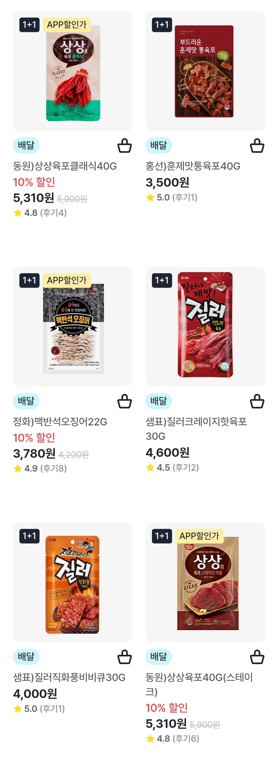 동원)상상육포오리지널70G 10% 할인 8,010원 8,900원